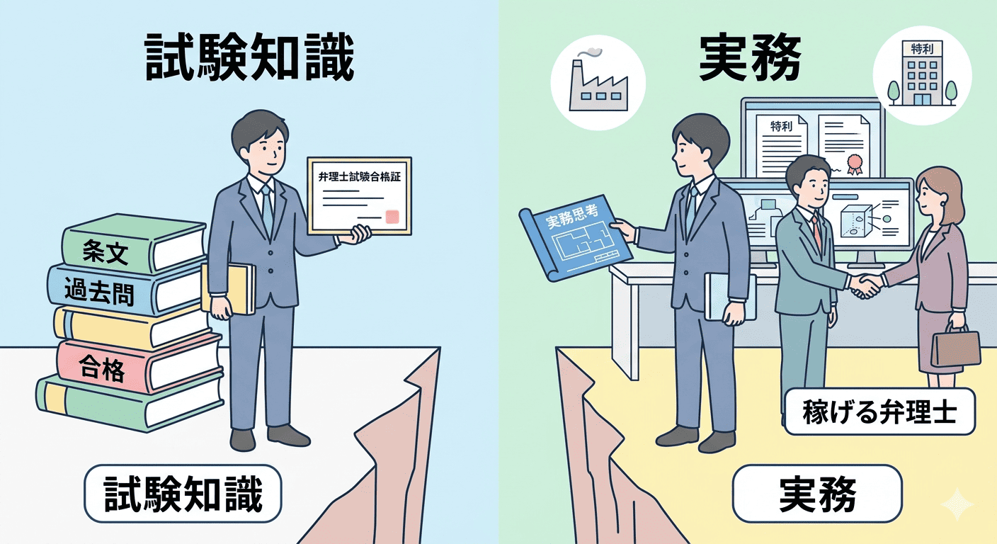 「あんなに難しい試験を突破したのに、なぜ仕事ができないの?」と疑問に思うかもしれません。実は、弁理士試験の知識と、特許事務所での実務の間には、深い「溝」があるからです。